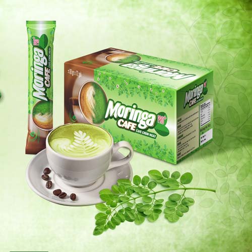 Dựa vào giá trị đặc biệt của Cây Chùm ngây (Moringa), công ty CP Quốc tế Moringa đã kết hợp bột Chùm ngây hòa tan (từ lá, hạt, củ) với bột tan Cafe, kem không sữa thực vật, dường fructozo tạo nên một sản phẩm vô cùng đặc biệt Cà phê Chùm ngây (Moringa cafe)