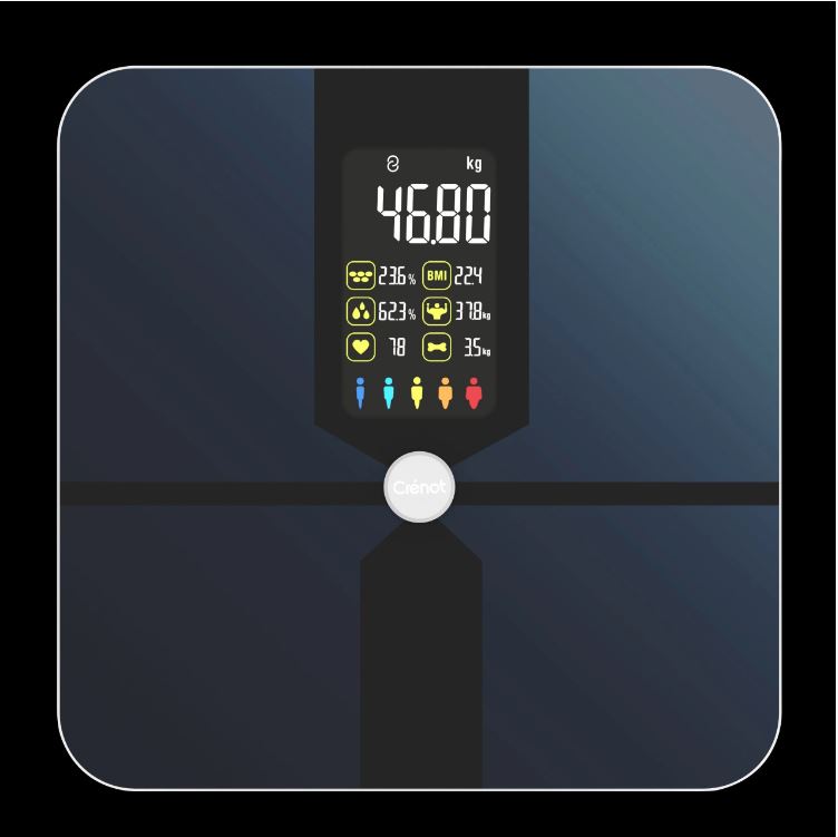 - Kết nối Smartphone thông qua Bluetooth® với ứng dụng Crénot Fitdays, hiển thị kết quả đo trực tiếp ngay khi bạn đứng lên cân.