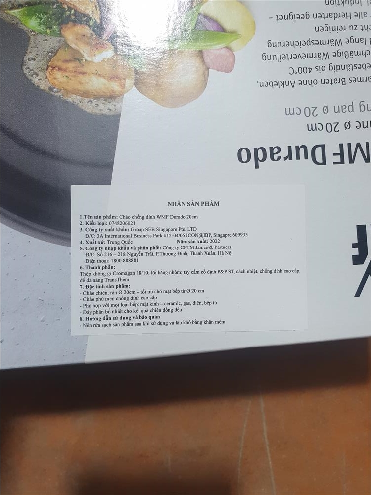 - WMF Durado 20cm - Mẫu chảo chống dính cao cấp theo công nghệ Đức, bề mặt lòng chảo tráng gốm chống dính ceramic chịu nhiệt độ lên đến 400°C, đảm bảo chiên xào rán an toàn, không bám dính thực phẩm.