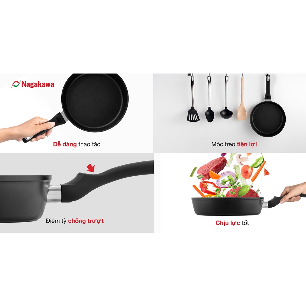 Chảo chống dính đáy từ Nagakawa NAG2601 được làm từ nhôm cao cấp dày dặn với công nghệ đúc tiên tiến cho sản phẩm độ cứng cao giúp dẫn nhiệt nhanh. Tay cầm bằng nhựa Bakelite siêu bền, chịu nhiệt cao.