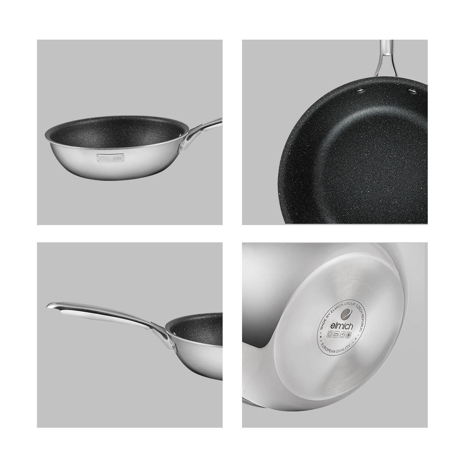 Chảo inox nguyên khối, chống dính vân đá 3D elmich Trimax 2 size EL2415OL 20cm, EL2416OL 24cm