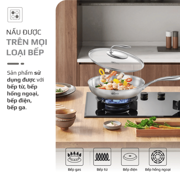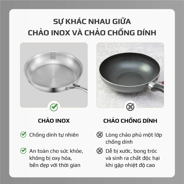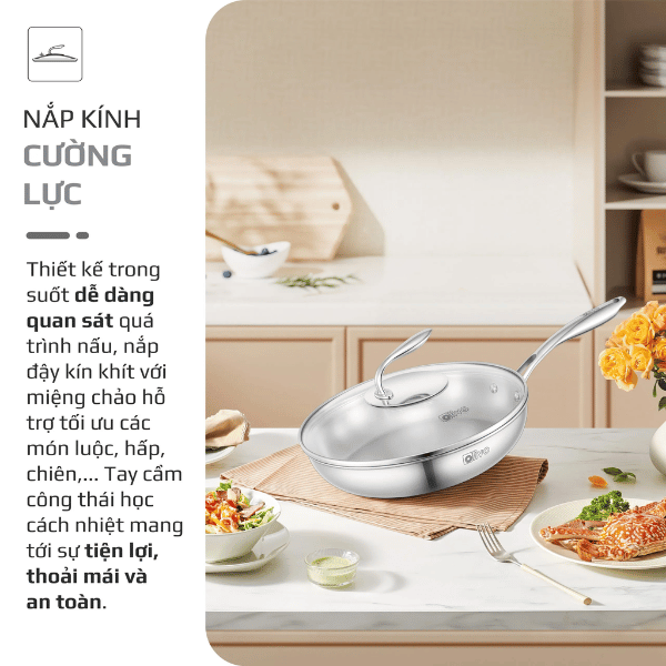 Thành chảo cao, hạn chế bắn dầu, thích hợp chiên xào, áp chảo hoặc nấu các món nước.