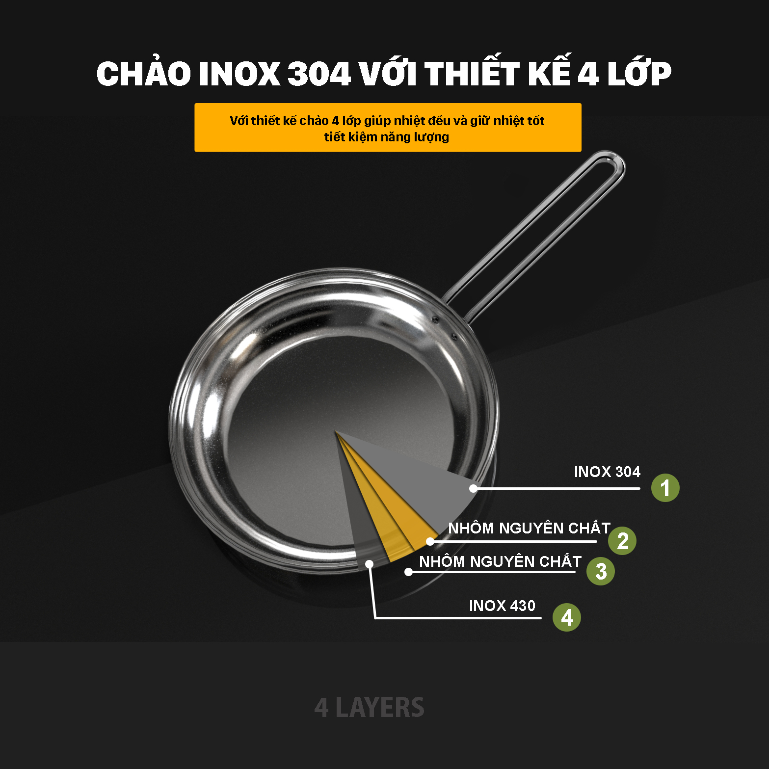 + Lớp lõi được xen kẽ bởi các lớp nhôm cao cấp giúp dẫn nhiệt nhanh và tản đều khắp bề mặt