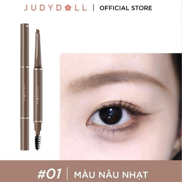 Thương hiệu Judydoll được biết đến với các sản phẩm mỹ phẩm an toàn, giá cả phải chăng và thiết kế hiện đại. Chì kẻ mày Long-Lasting Eyebrow Gel Pencil được sản xuất từ nguyên liệu cao cấp, không chứa paraben hay chất gây hại, đã qua kiểm nghiệm da liễu để đảm bảo an toàn cho da nhạy cảm quanh vùng mắt. Công nghệ đông đặc gel từ mực mascara ở nhiệt độ thấp 5 độ C, tạo màng đông ba lần giúp tăng độ bám màu cao, lên màu tự nhiên mà không vón cục hay bay bụi. Bảng màu đa dạng với các tông phù hợp da Á Đông, bao gồm #01 Light Brown nâu nhạt tự nhiên cho trang điểm hàng ngày, #02 Nâu Tro cho vẻ ngoài thanh lịch và #03 Xám Khói cho phong cách cá tính. Màu sắc lên da đều, không quá đậm, giúp tạo hình dáng chân mày rõ ràng nhưng vẫn mềm mại.
