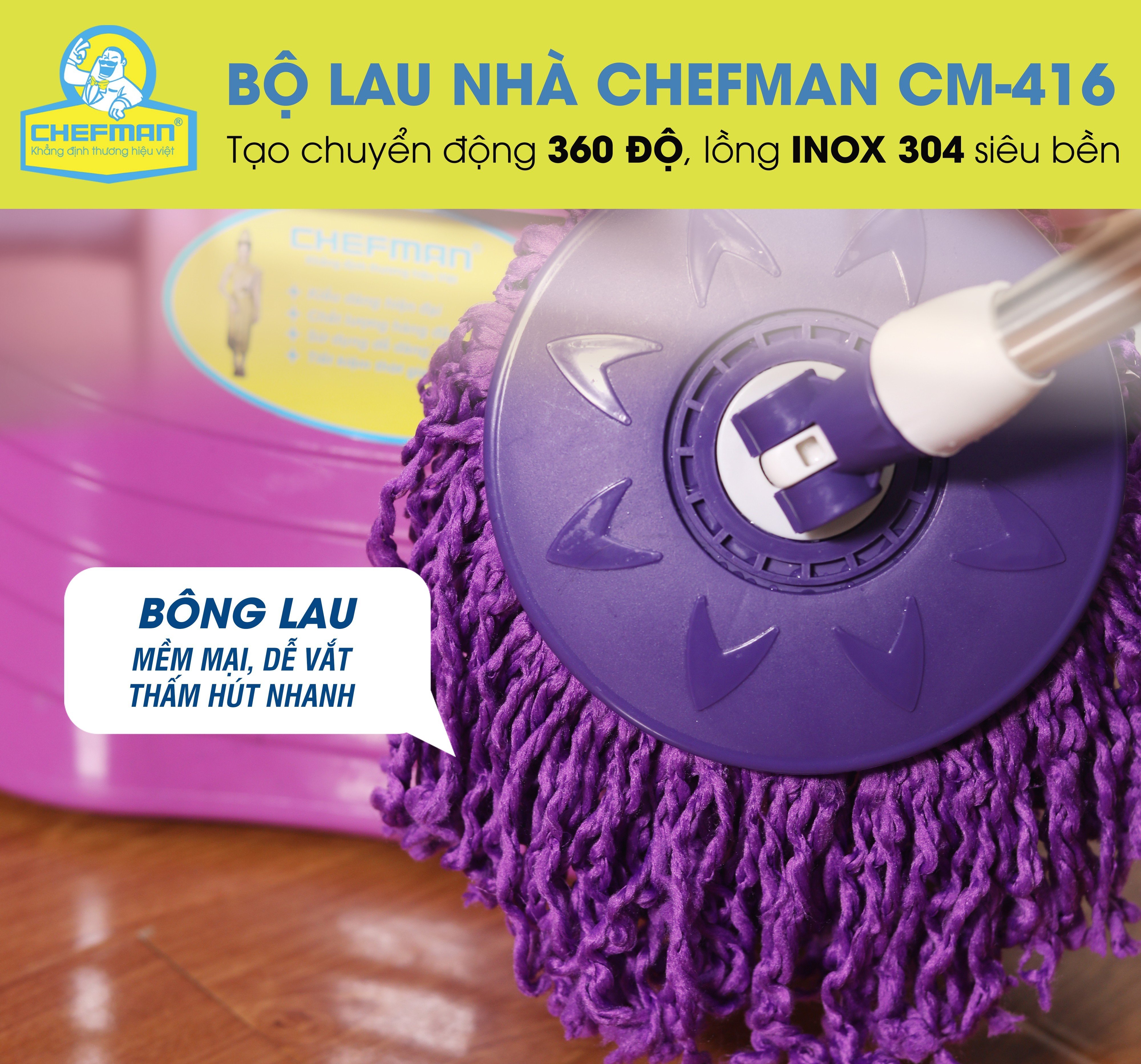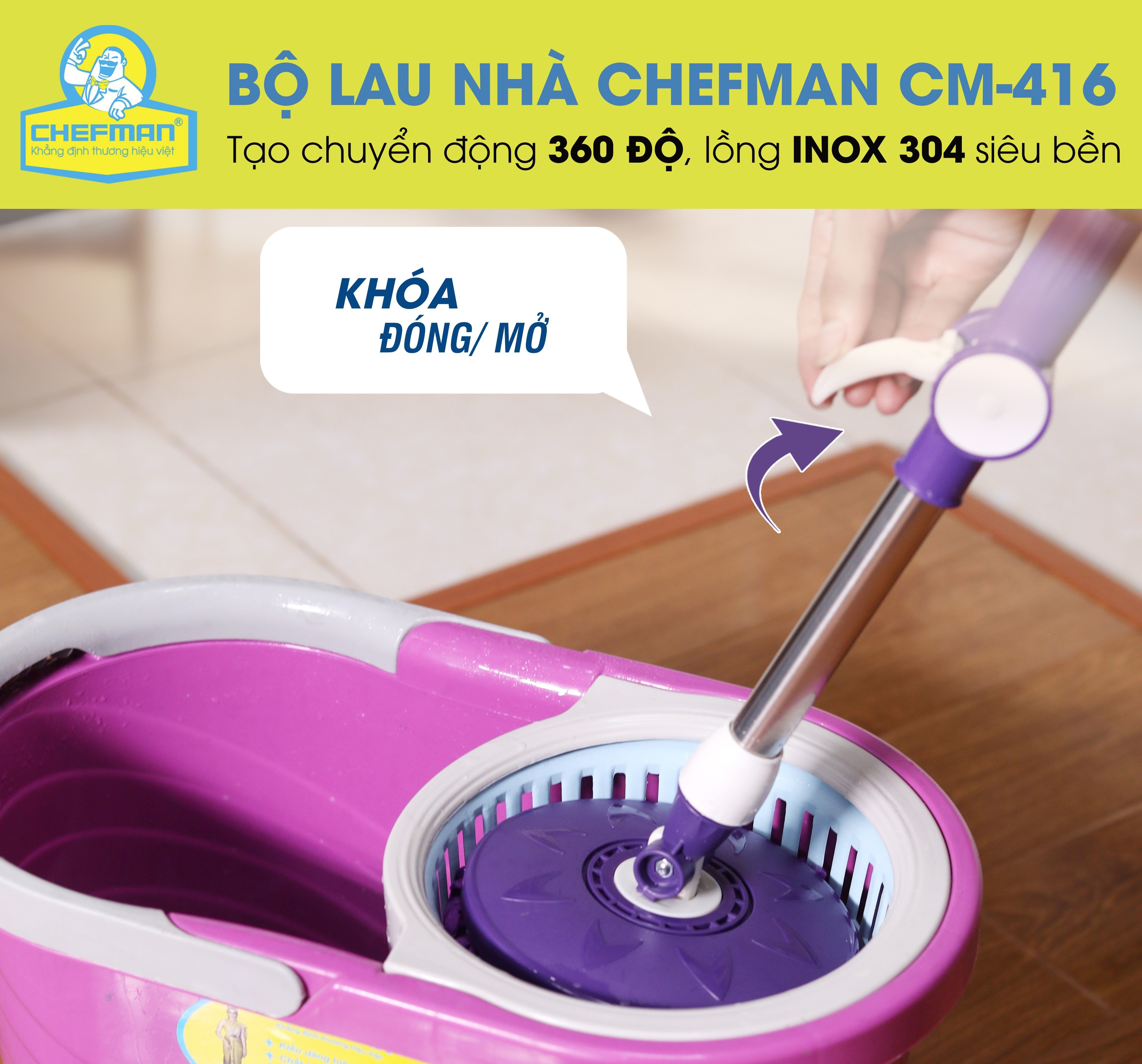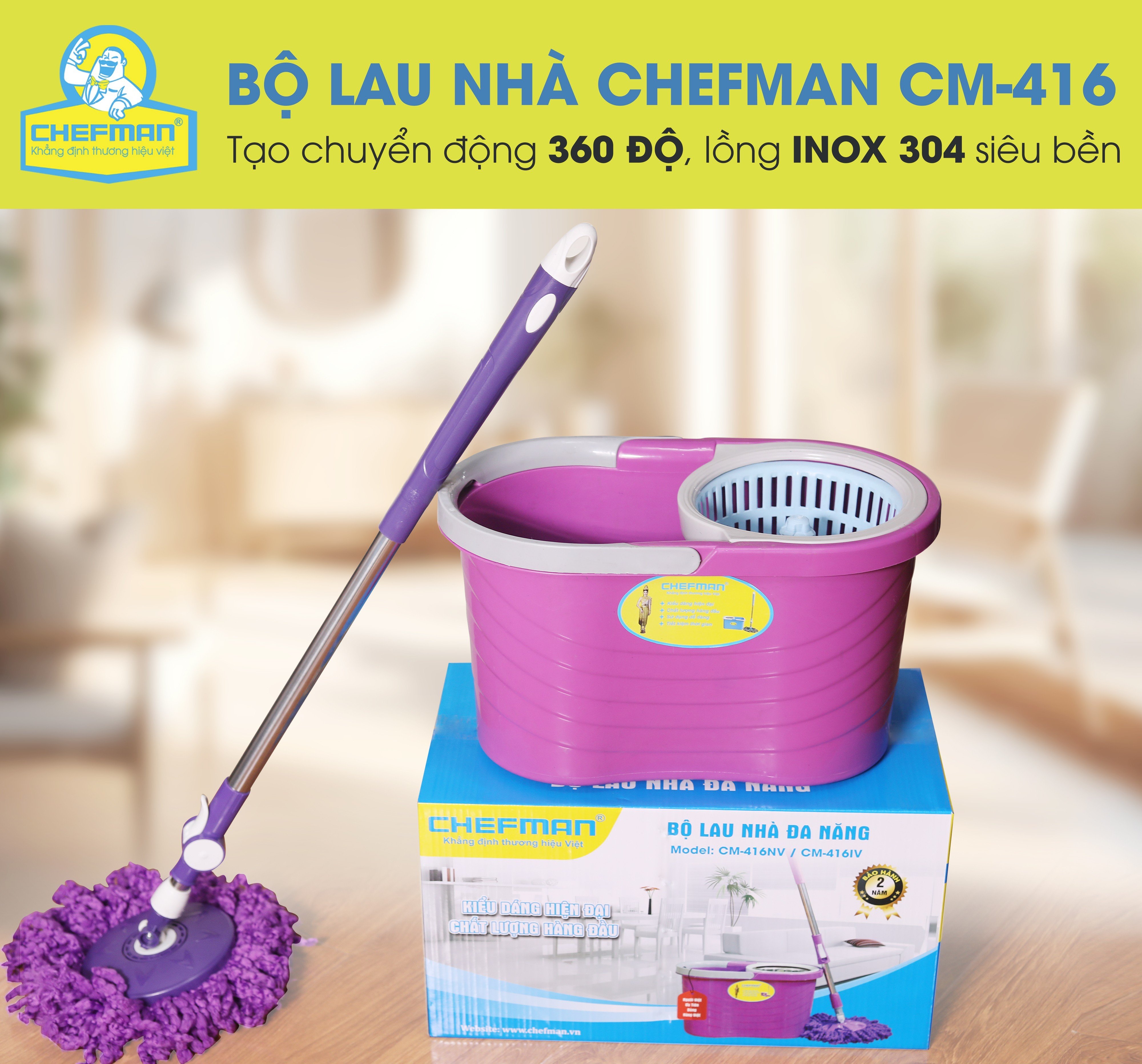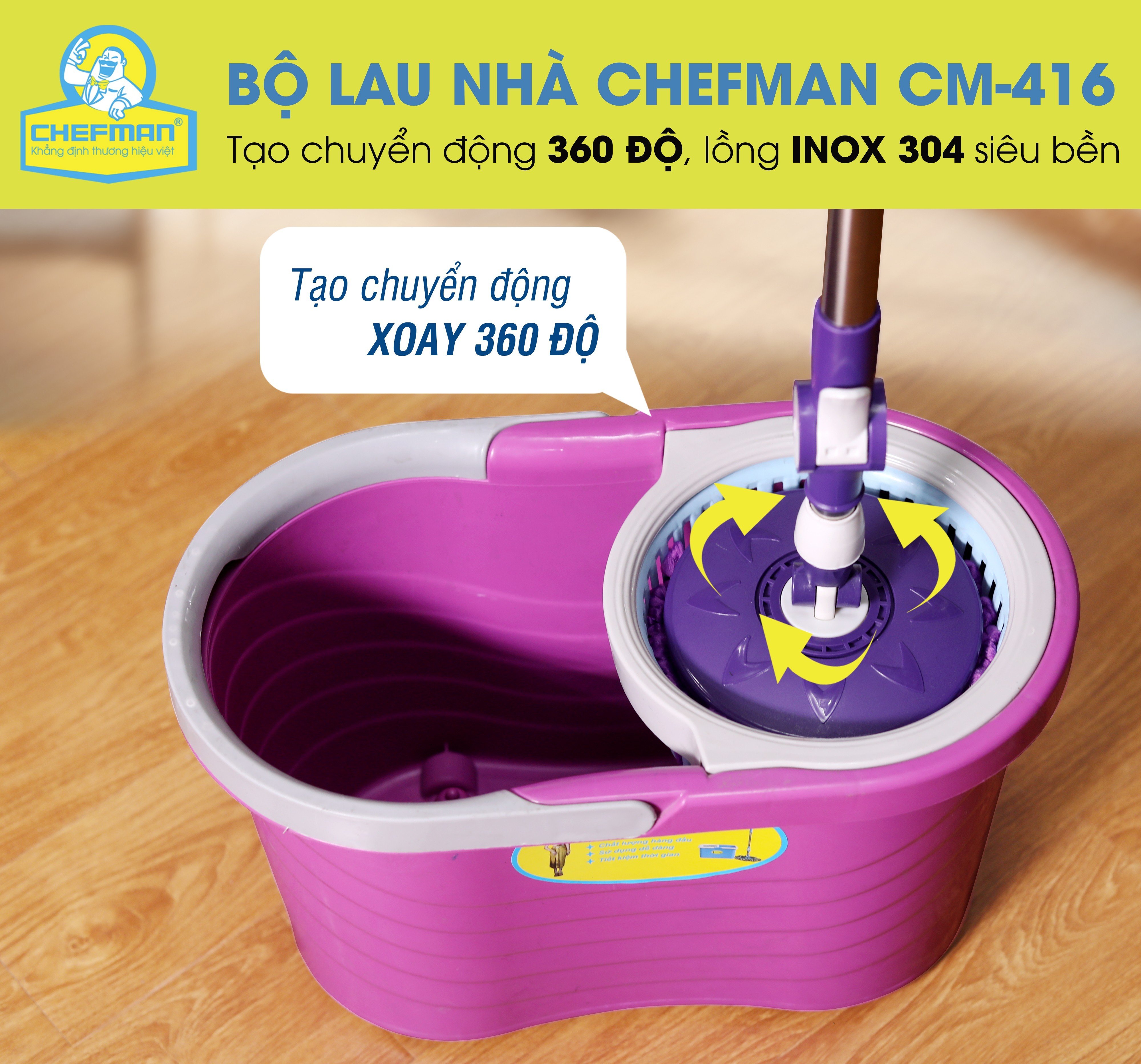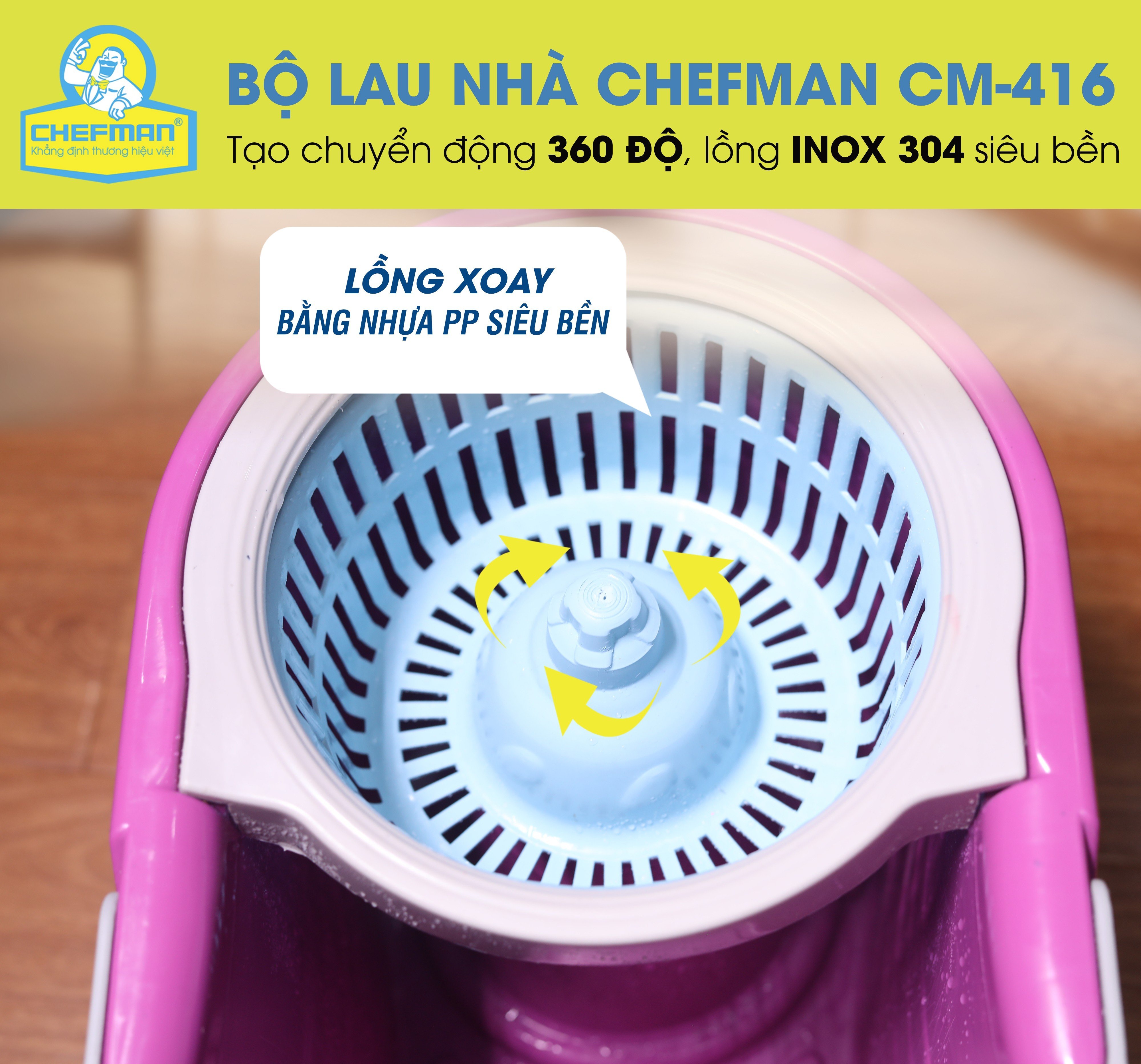 - Rổ xoay ly tâm vắt sạch nước dễ dàng, có thể tháo rời để vệ sinh... Chổi lau nhà Chefman CM- 416NV 360 độ hiện được rất nhiều gia đình chọn mua và sử dụng bởi công dụng đa năng cũng như các tính năng cực kỳ thông minh, tiện ích của sản phẩm.