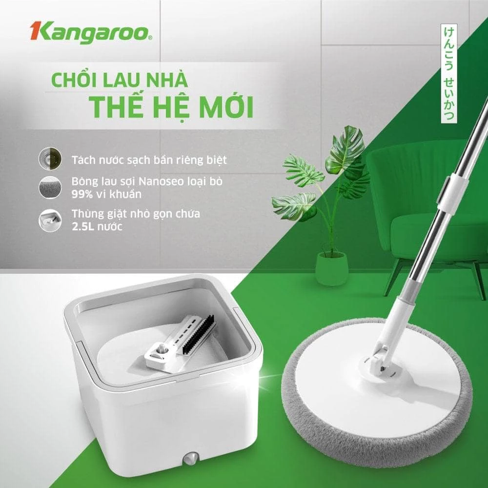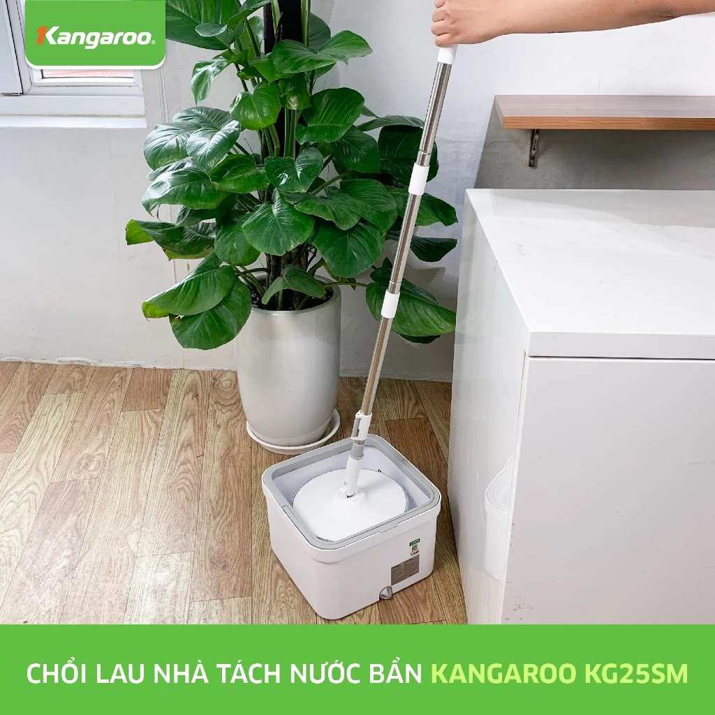 Chổi lau nhà tách nước thông minh Kangaroo KG25SM tự phân loại nước bẩn và nước sạch. Giúp bạn giặt sạch bông lau hơn với lượng nước ít hơn. Sử dụng hệ thống vòi phun tuần hoàn cao áp biến tần loại bỏ vết bẩn và vô hiệu vi khuẩn, tiết kiểm 70% thời gian và công sức.