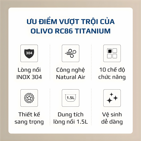 Combo Bếp Hạng Sang OLIVO: Nồi Cơm RC86 Titanium & Dao Cao Cấp STEVE Lưỡi S3