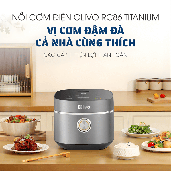 Combo Nồi Cơm Điện OLIVO RC86 Titanium + Xửng Hấp Inox, Giải pháp nấu ăn toàn diện cho gia đình