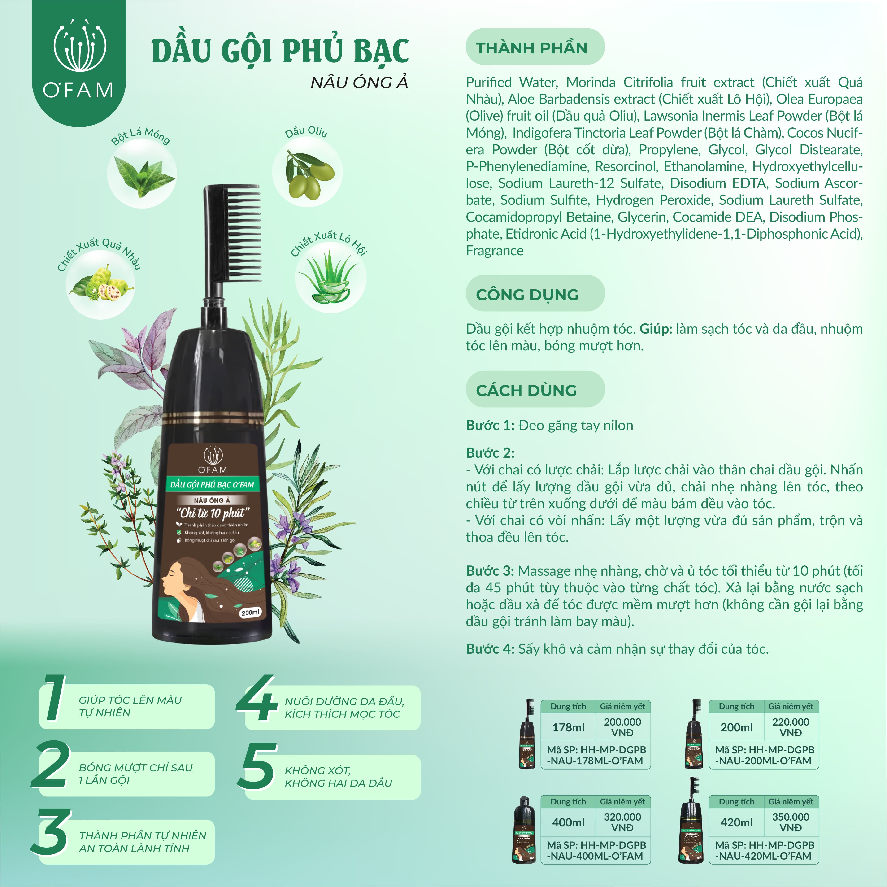 DẦU GỘI PHỦ BẠC O'FAM ĐEN TỰ NHIÊN/ NÂU ÓNG Ả