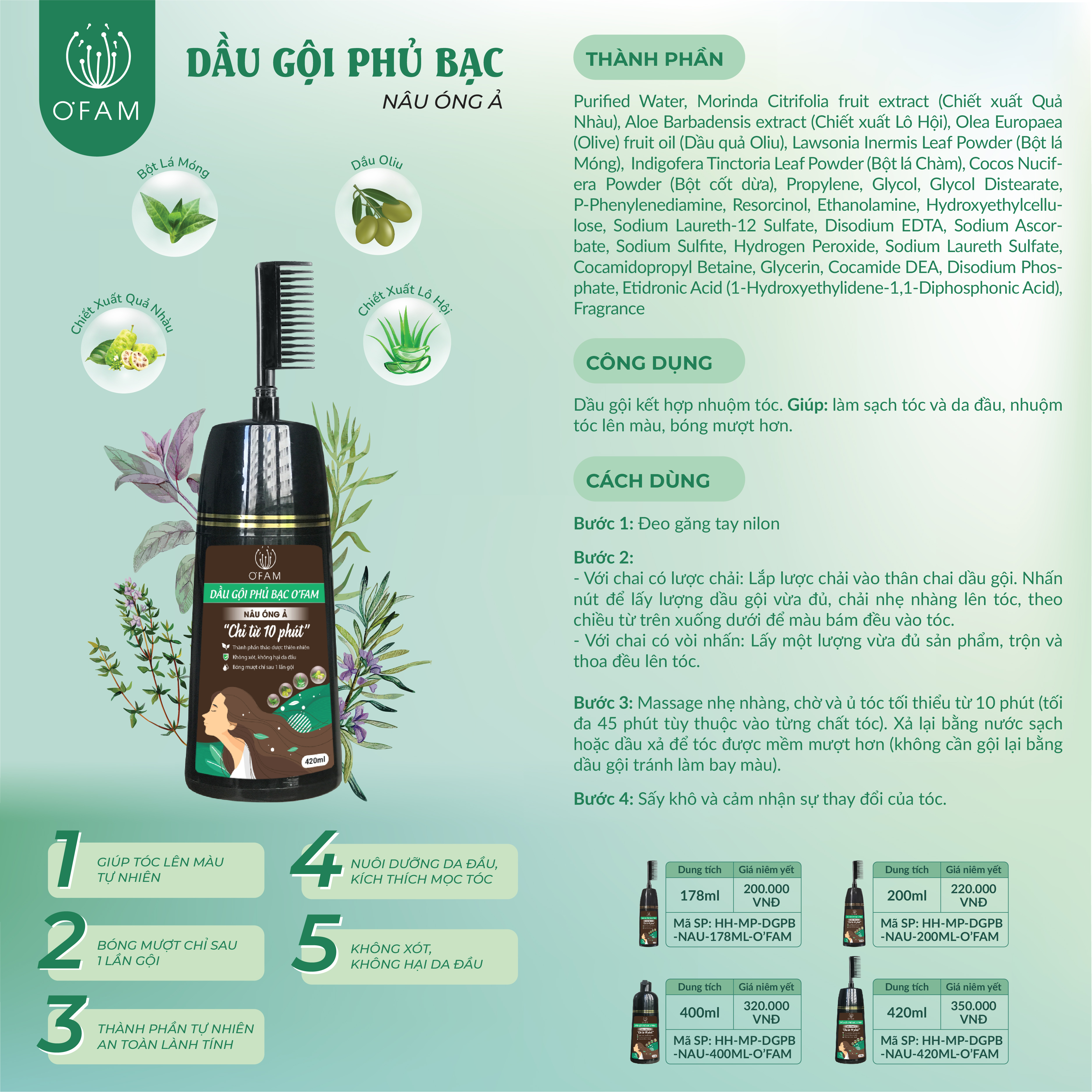 DẦU GỘI PHỦ BẠC O'FAM ĐEN TỰ NHIÊN/ NÂU ÓNG Ả