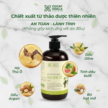 Dầu Gội Hà Thủ Ô 2in1 được chiết xuất từ các thảo dược quý như Hà Thủ Ô, giúp làm đen tóc, ngăn bạc sớm và nuôi dưỡng chân tóc chắc khỏe. Bồ Kết chứa hoạt chất saponin tự nhiên giúp làm sạch da đầu, loại bỏ bụi bẩn và dầu nhờn. Gừng tươi kích thích tuần hoàn máu, thúc đẩy tóc mọc nhanh và giảm gãy rụng. Tinh dầu Bưởi giúp tăng độ bóng mượt, mang lại hương thơm tươi mát dễ chịu. Ngoài ra, Lô Hội và Vitamin E cung cấp độ ẩm, phục hồi tóc khô xơ và hư tổn. Tất cả các thành phần được chọn lọc kỹ lưỡng, không chứa paraben hay chất tẩy rửa mạnh, an toàn cho da đầu nhạy cảm.