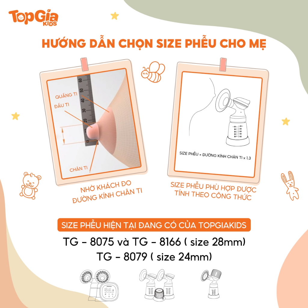 Lưu ý: ngực to hay nhỏ không ảnh hưởng đến size phễu. Size phễu chỉ tính theo đường kính núm ti.