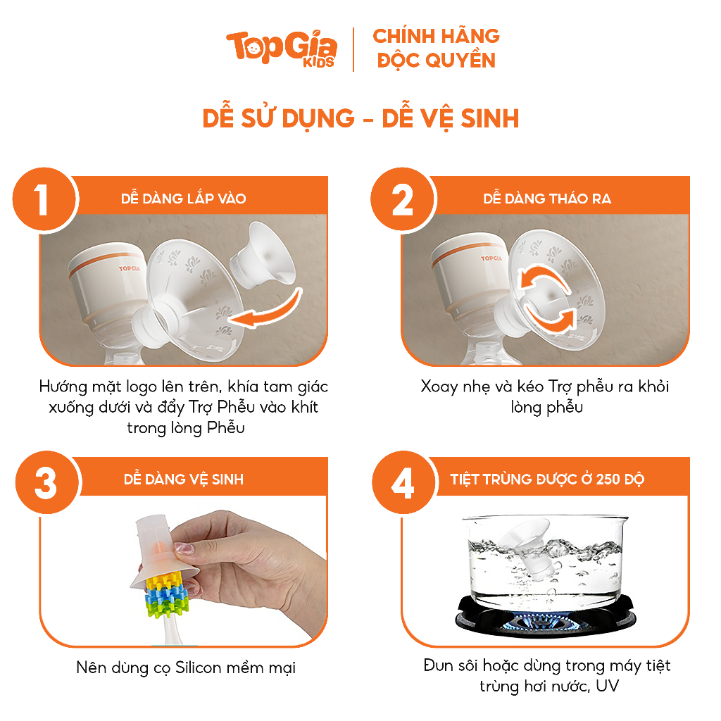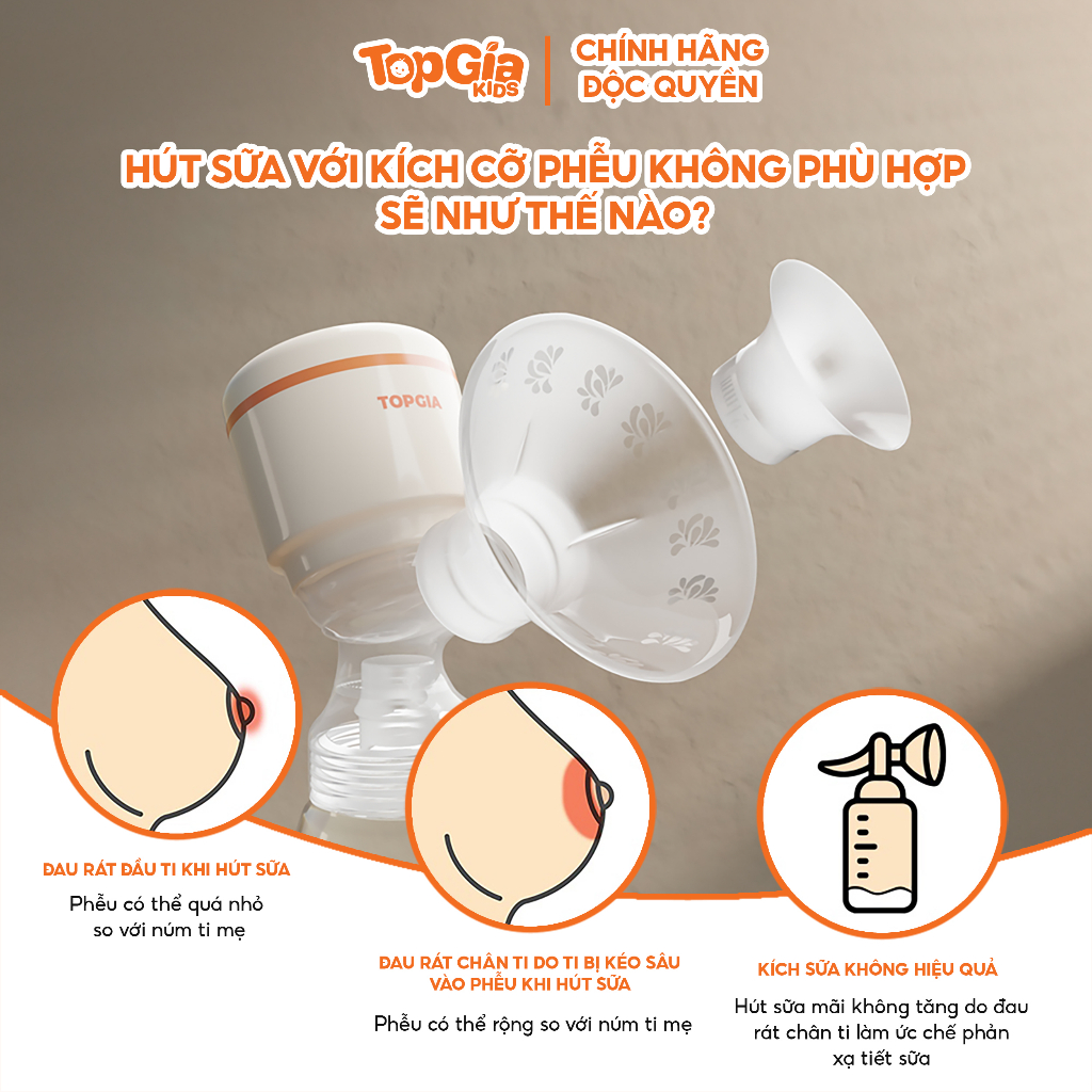 Đệm giảm size cho phễu TopGiaKids giúp tăng hiệu quả hút sữa, khi dùng đúng size phễu hút sữa sẽ không đau và đầu ti sẽ không to theo thời gian, hạn chế hở, giảm đau ti, giúp hút kiệt, tăng công dụng massage và hút sữa cho máy.