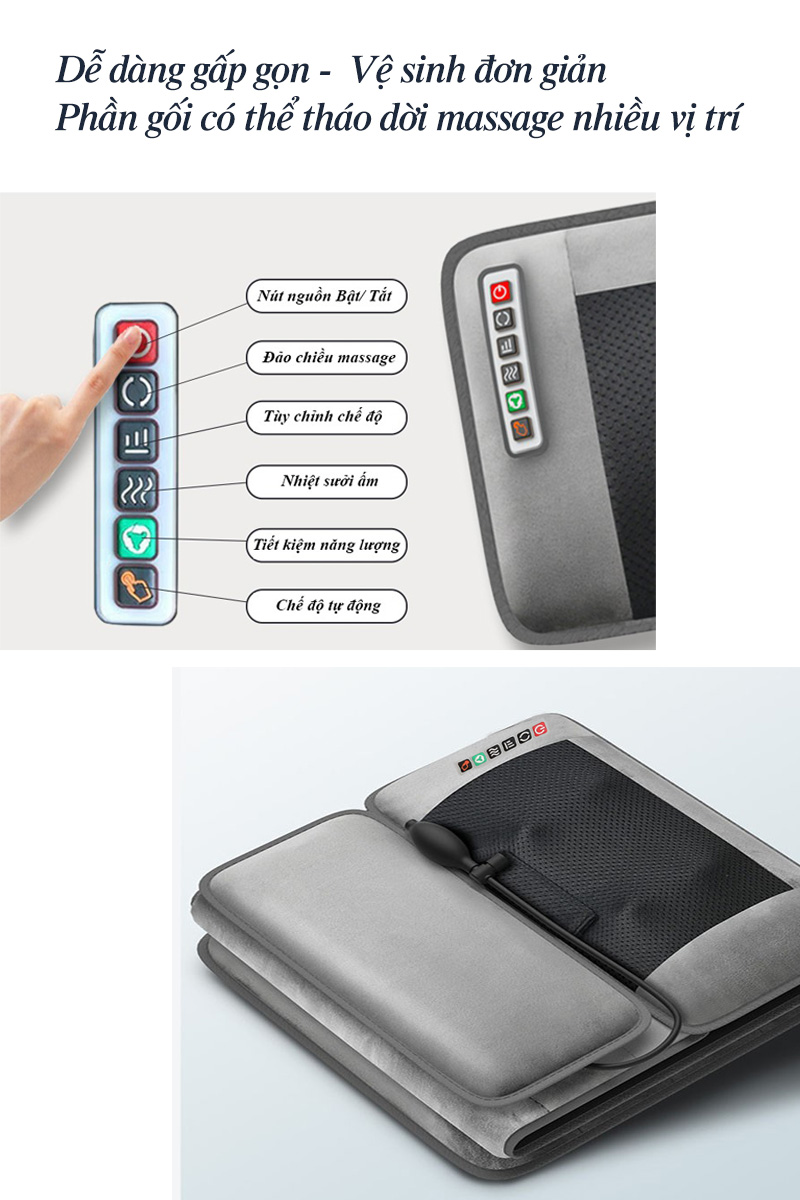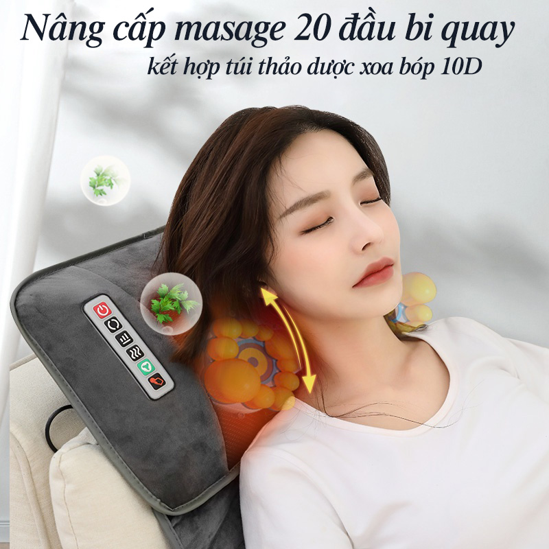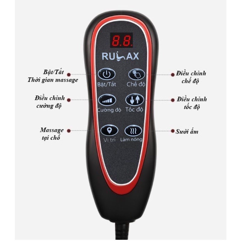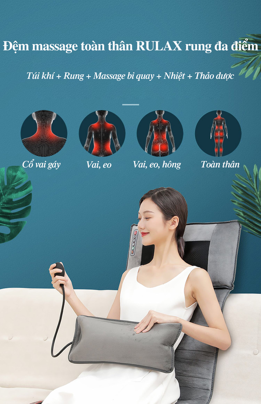 Đệm massage toàn thân Rulax có phần gối massage 20 bi cao cấp massage xoa bóp cổ kết hợp đèn hồng ngoại đảo chiều,massage mô phỏng như bàn tay nhân viên massage chuyên nghiệp.