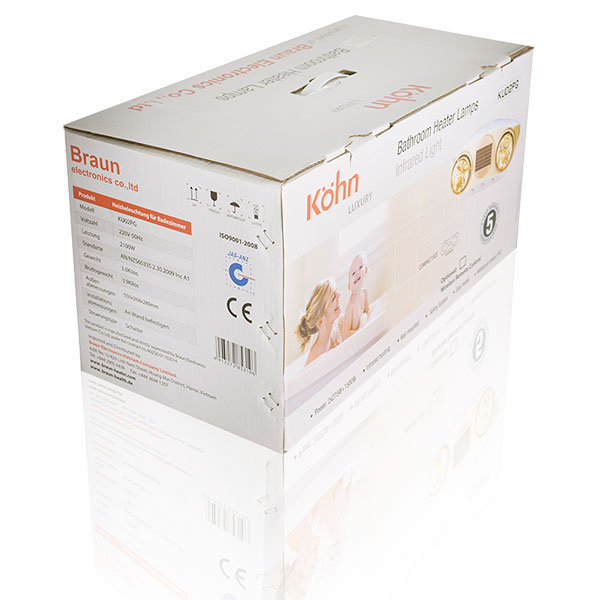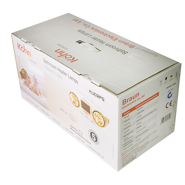 Với trọng lượng chỉ 3.0kg, đèn sưởi KOHN LUXURY MODEL KU02PG nhẹ nhàng và dễ dàng cài đặt. Nó được thiết kế để chống nước với tiêu chuẩn chống nước IPX2 và chống chập điện, đảm bảo an toàn tuyệt đối cho người dùng. Dây và phích cắm được cung cấp kèm theo sản phẩm có chiều dài 2,5m, màu trắng và tuân thủ tiêu chuẩn EU, giúp việc lắp đặt trở nên thuận tiện hơn bao giờ hết.