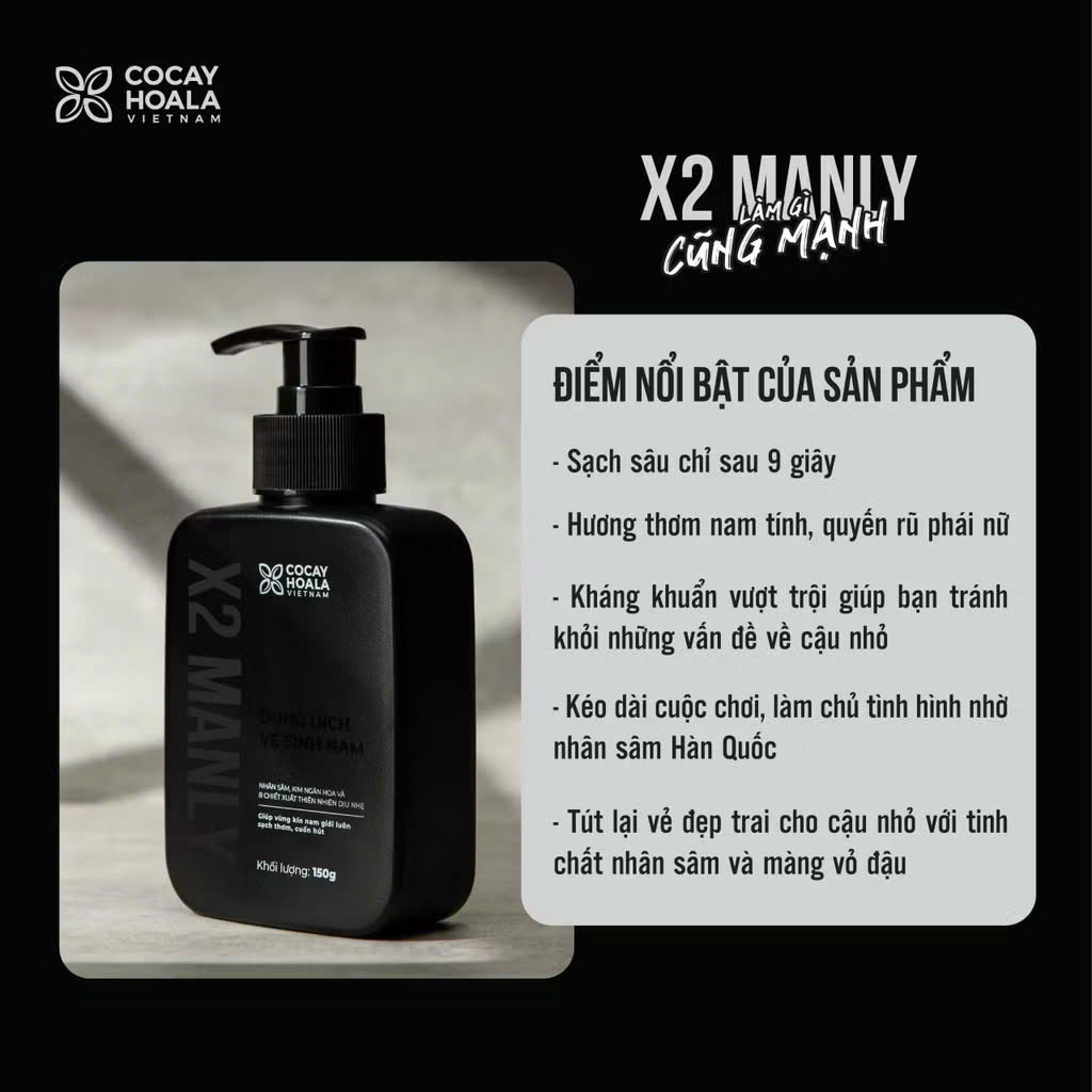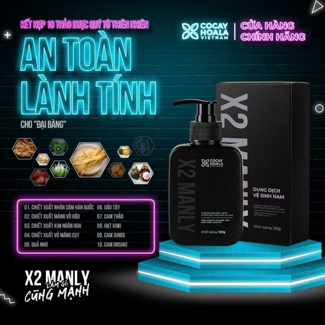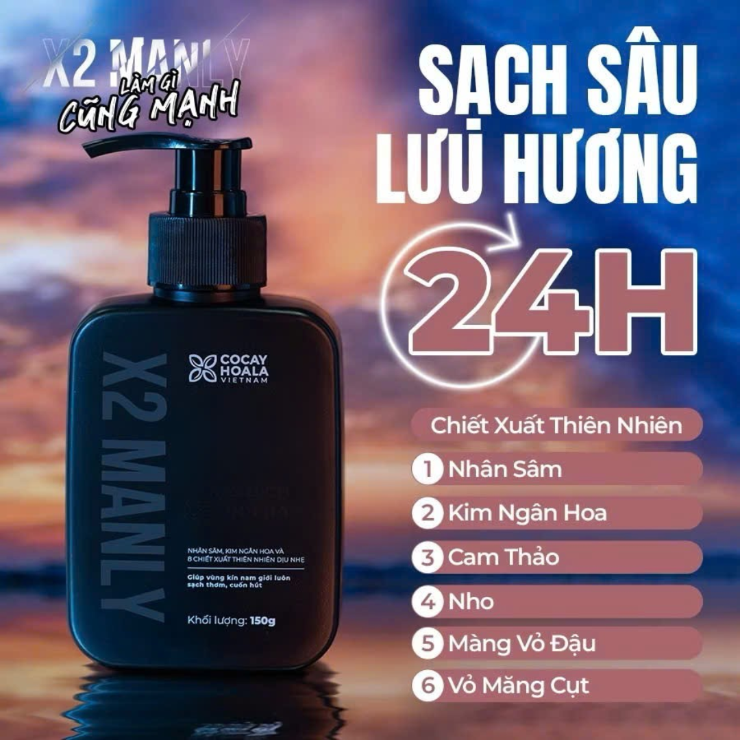 Dung Dịch Vệ Sinh Nam Giới Gel X2 Manly Cỏ Cây Hoa Lá – Làm sạch tức thì, lưu hương tự tin 24h