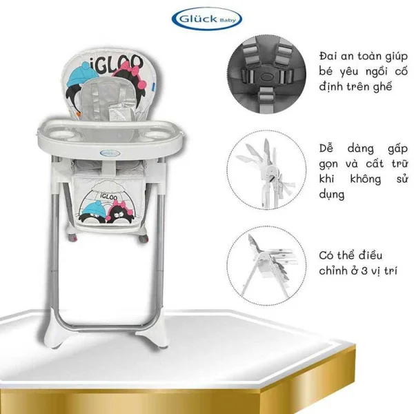 Là đồ dùng phục vụ ăn uống cho trẻ ở giai đoạn ăn dặm. So với các dòng ghế ăn dặm chân cao thì ghế ăn dặm trẻ em Gluck Baby được đánh giá là dòng sản phẩm có chất lượng tốt, giá thành phải chăng đến từ thương hiệu đồ dùng cho bé khá nổi tiếng. Ghế được các ba mẹ bỉm sữa tin tưởng lựa chọn sử dụng và hài lòng cao.