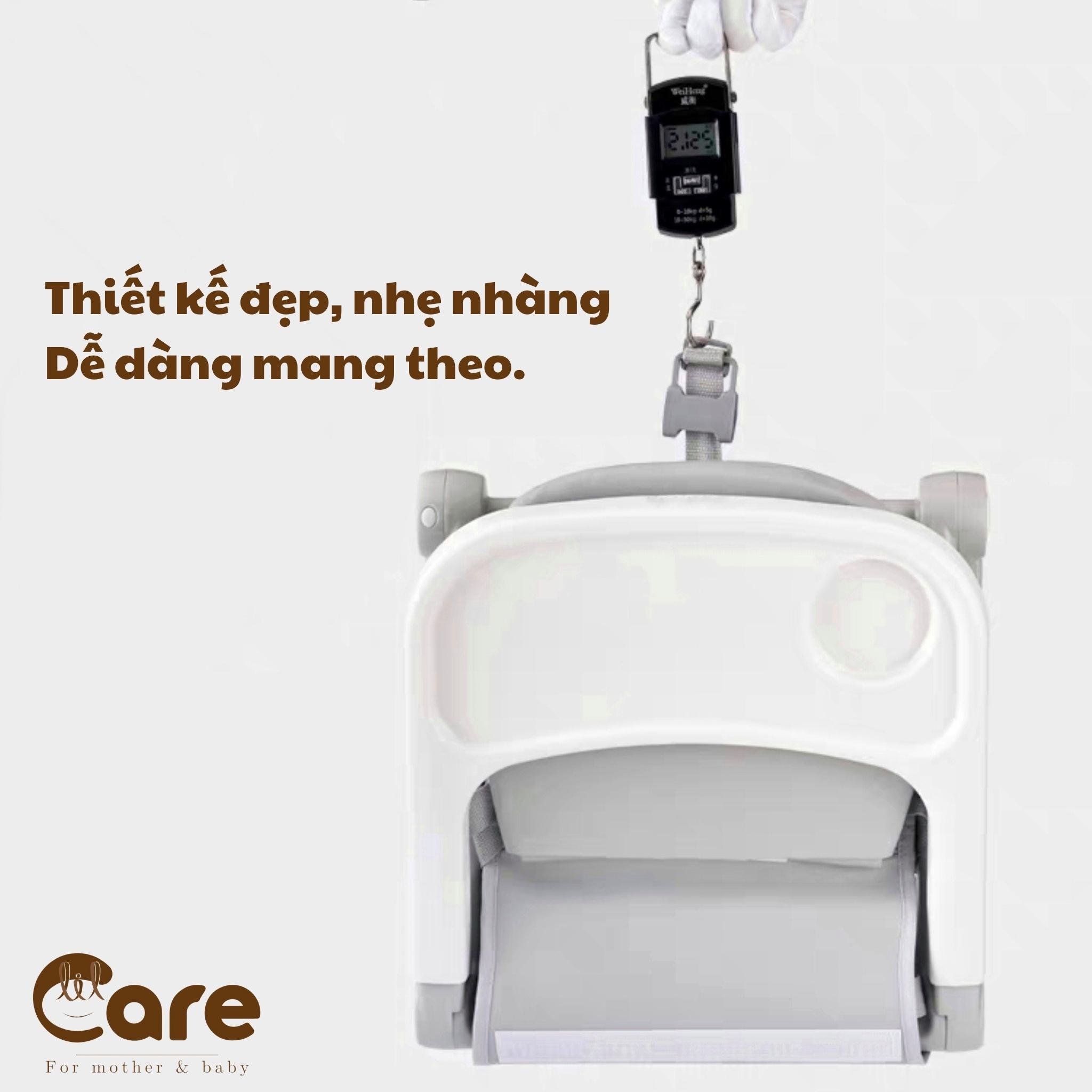 -Siêu nhẹ gấp gọn chỉ vài thao tác mẹ có thể mang ghế đi khắp nơi Khay ăn có thể tháo rời, thuận tiện vệ sinh sau mỗi bữa ăn.