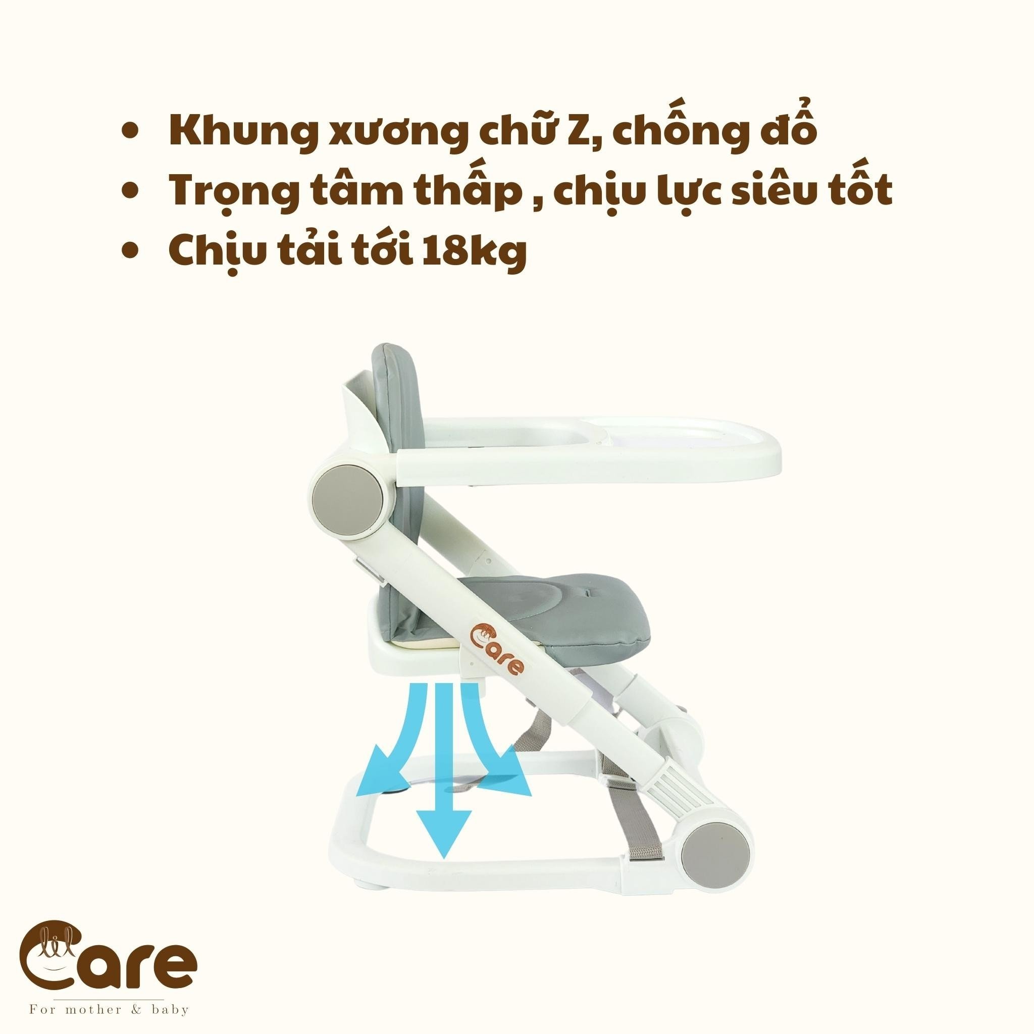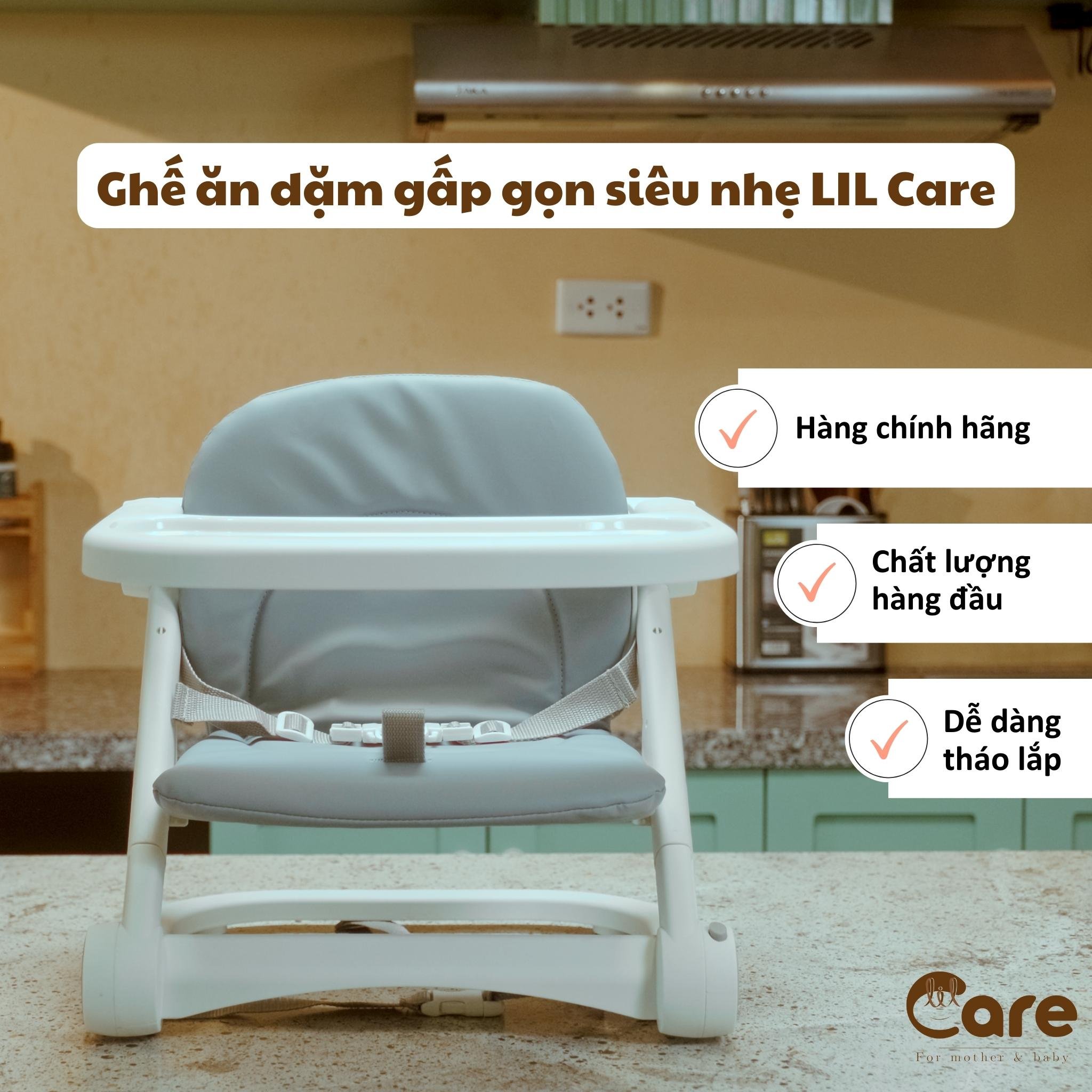 Ghế ăn dặm gấp gọn siêu nhẹ LIL CARE với thiết kế nhỏ gọn, vừa làm ghế ăn, ghế ngồi chơi cho con vô cùng tiện lợi.