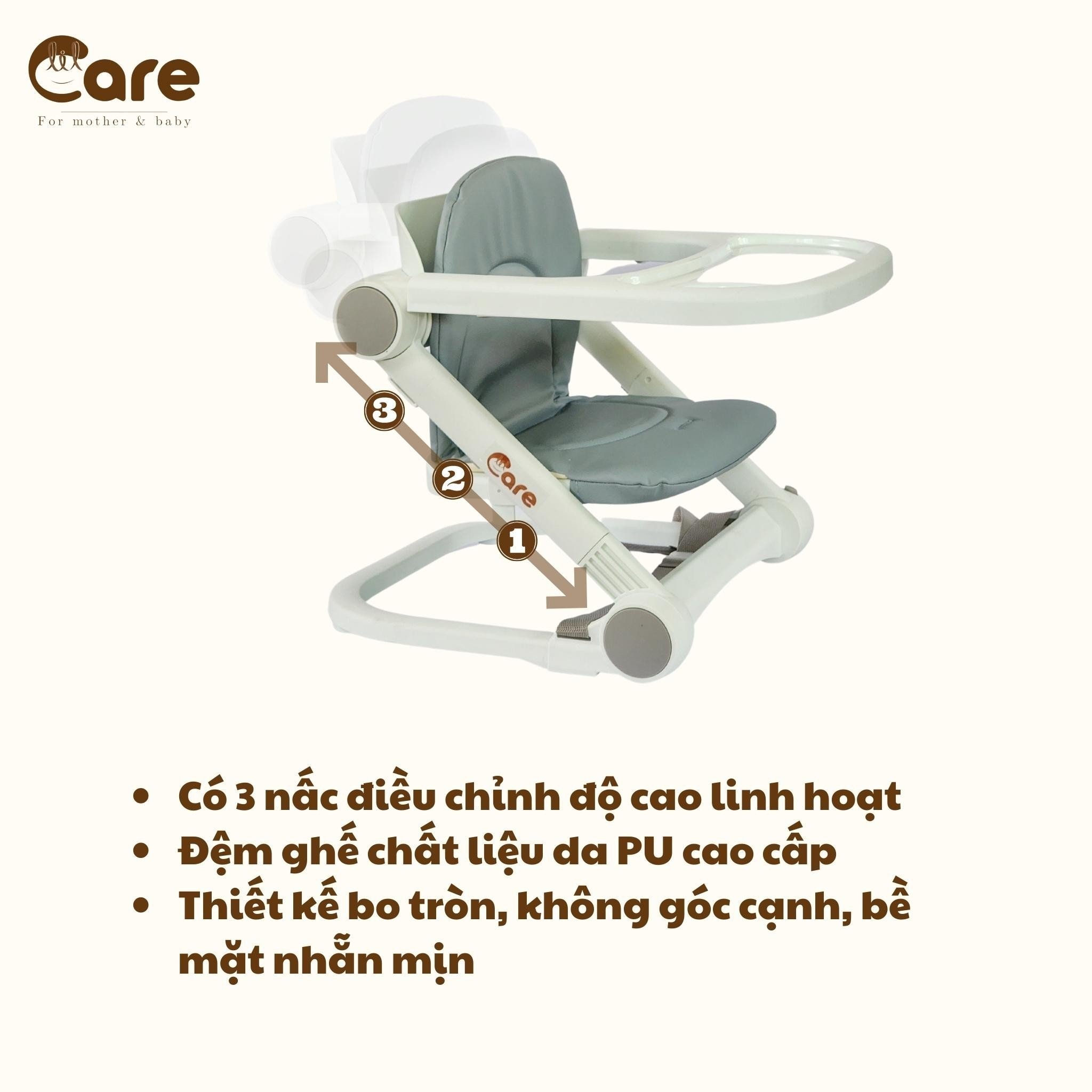 Cấu tạo của Ghế ăn dặm gấp gọn siêu nhẹ LIL CARE