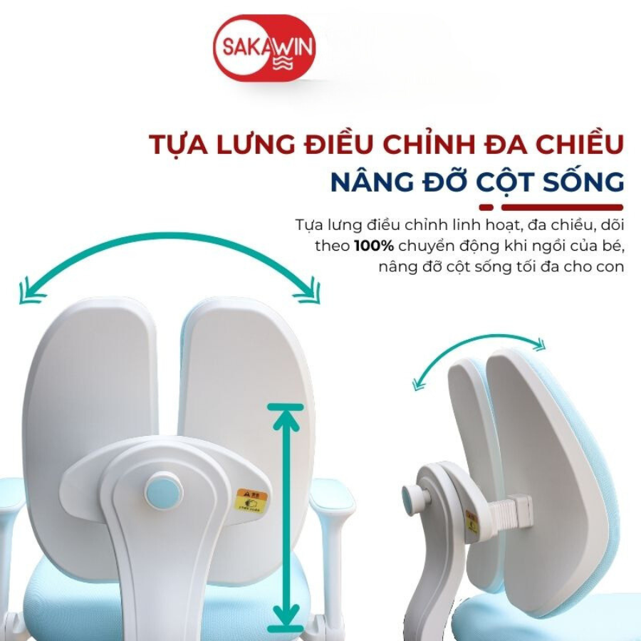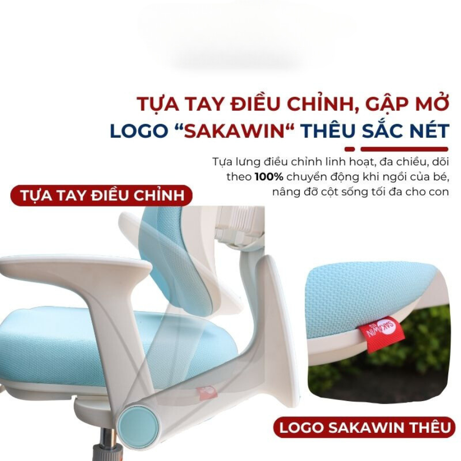 Ghế học sinh chống gù Sakawin G104Plus, Ghế ngồi học cho bé có nâng hạ tay quay, bảo hành 24 tháng