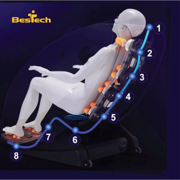 Hệ thống massage phân bổ khắp cơ thể giúp giảm căng thẳng đau nhức cơ, xương khớp. Cải thiện sự linh hoạt cho cơ thể. Hỗ trợ cải thiện các chứng bệnh liên quan đến nội tạng, hệ hô hấp.