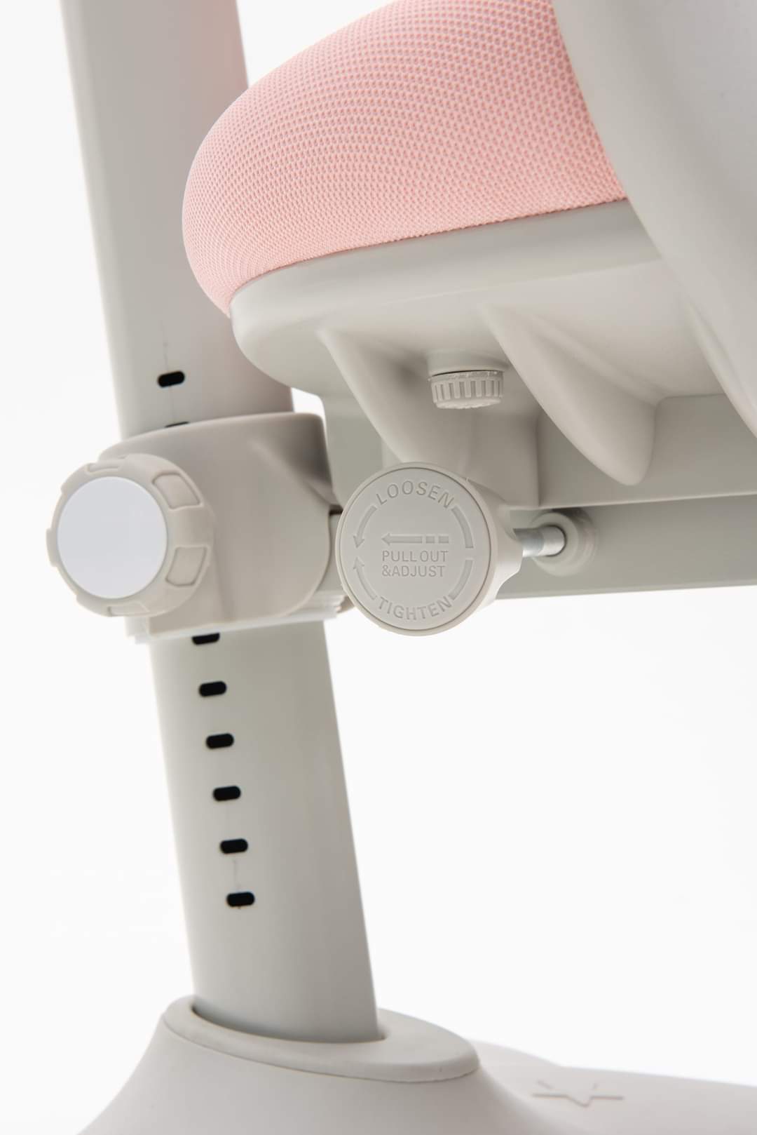 Ghế có thể thay đổi chiều cao phần đệm ngồi, chiều cao tựa lưng một cách độc lập theo sự phát triển của trẻ. Điều này giúp trẻ có được tư thế ngồi học thoải mái nhất.