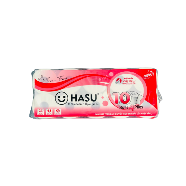 Giấy vệ sinh Hasu 10 cuộn có lõi phù hợp dùng trong phòng tắm, nhà bếp, văn phòng, cửa hàng, khách sạn hoặc nhà nghỉ. Độ mềm mại vừa phải và bề mặt mịn giúp tạo sự dễ chịu khi tiếp xúc trực tiếp với da, đồng thời vẫn đảm bảo độ bền trong quá trình sử dụng. Sản phẩm là lựa chọn quen thuộc của nhiều gia đình nhờ chất lượng ổn định và giá cả hợp lý.
