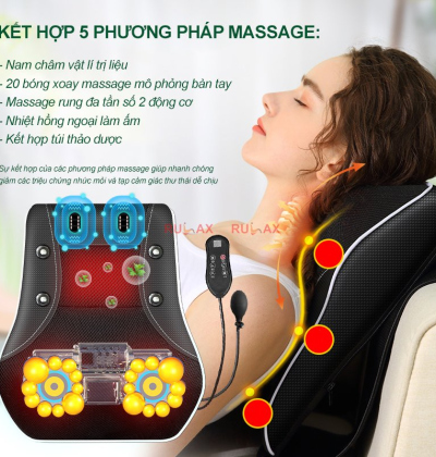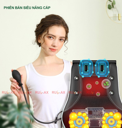 - ĐIỂM ĐẶC BIỆT của bản nâng cấp dòng sản phẩm Gối massage cổ vai gáy Rulax là KẾT HỢP NAM CHÂM TỪ TÍNH, MASSAGE RUNG VÀ PHẦM BÓP ĐẨY KHÍ ở phần thân máy.