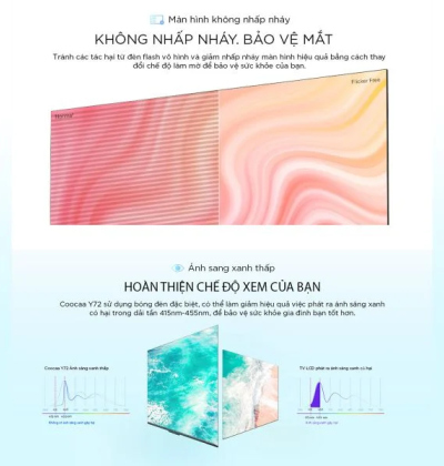 Với công nghệ hạn chế màn hình nhấp nháy Flicker-free và giảm tác động của ánh sáng xanh Low Blue Light giúp bảo vệ mắt của bạn và các thành viên trong gia đình một cách hiệu quả. Giờ đây, bạn không cần phải quá lo lắng khi con em mình theo dõi các nội dung giải trí trên chiếc tivi Coocaa 4K Y68 mỗi ngày