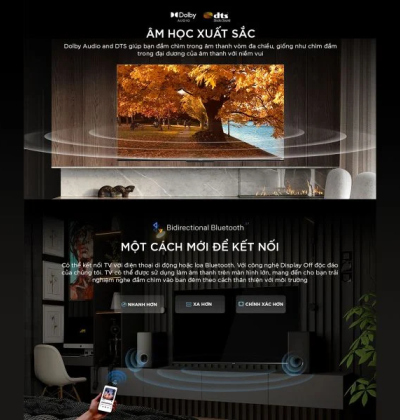 Ngôi nhà của bạn sẽ trở thành một rạp chiếu phim thu nhỏ bởi dàn âm thanh 20W chuẩn Dolby Audio và DTS Studio Sound của Coocaa Y68. Với hỗ trợ cổng kết nối SPDIF và khả năng kết nối Bluetooth 2 chiều, bạn hoàn toàn có thể sử dụng các thiết bị ngoại vi chuyên dụng để thưởng thức nội dung giải trí tuyệt đỉnh trên tivi Coocaa