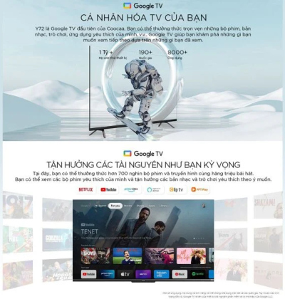 ội dung giải trí phong phú từ Google TV trên Coocaa Y73