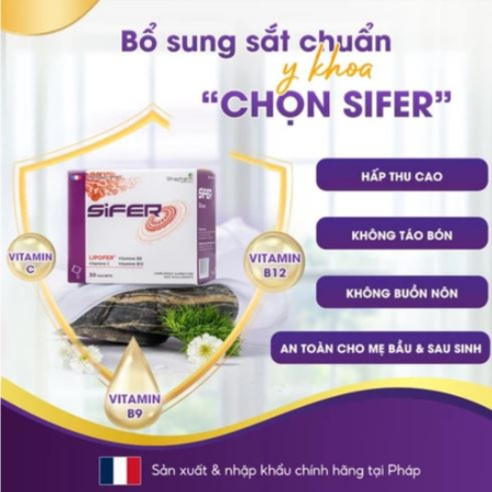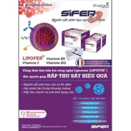 [Hộp 60gói] Sắt Sinh Học Sifer - Dành Cho Bà Bầu, Em Bé, Hương Cam, Bổ Sung Sắt, Vitamin, Giảm Thiếu Máu