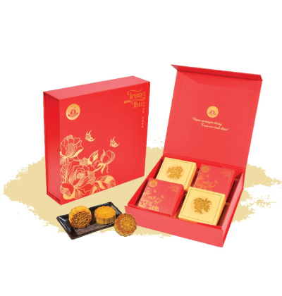 Hộp 4 bánh cao cấp - 480g. Nhân: Thập cẩm, đậu xanh trứng, cdừa, khoai môn.