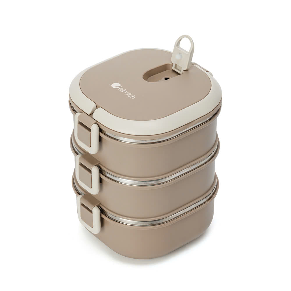 Thiết kế 3 tầng tiện lợi: Gồm 3 hộp tách biệt, giúp đựng nhiều loại thức ăn mà không bị lẫn hương vị. Dung tích mỗi hộp 700ml, với nắp hút thoát hơi bảo quản hương vị và độ tươi ngon của món ăn.