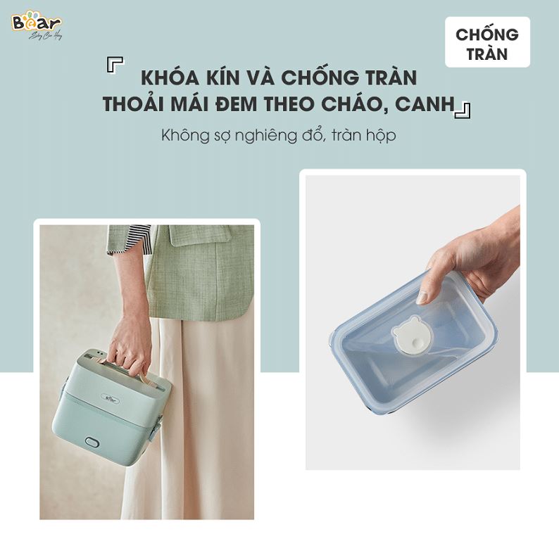 Bear luôn mong muốn mang đến cho khách hàng những sản phẩm tốt nhất, vì thế chúng tôi luôn quan tâm đến từng chi tiết trong thiết kế của hộp cơm. Với tay cầm mềm chống bỏng, sản phẩm của chúng tôi giúp người dùng dễ dàng mang theo bất cứ nơi đâu. Khóa được làm bằng thép chắc chắn không gỉ, đảm bảo an toàn và sử dụng lâu hơn so với các loại khóa làm bằng nhựa.
