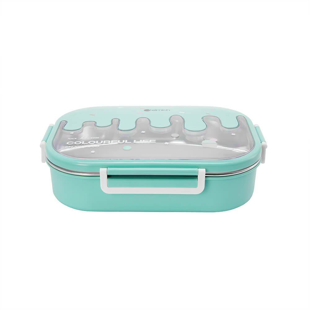 Nắp hộp được trang bị khóa gài chắc chắn nhưng thao tác mở đóng lại rất dễ dàng, phù hợp với bàn tay của trẻ. Các góc bo tròn an toàn, tránh gây trầy xước khi sử dụng. Màu sắc tươi sáng, họa tiết đáng yêu, kích thích bé hứng thú hơn với bữa ăn.