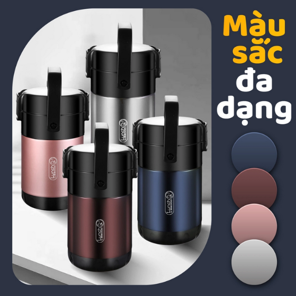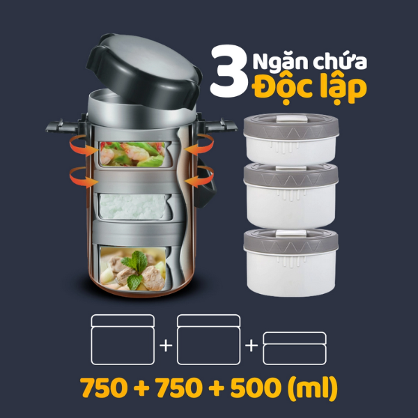 -Thiết kế thân thiện, dễ dàng lấy/mở các ngăn chứa khỏi hộp giữ nhiệt -3 ngăn chứa độc lập, mỗi ngăn chứa đều được đóng chặt kể cả khi dốc ngược cũng không bị trào nước/canh ra bên ngoài