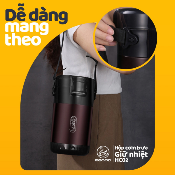 -Dễ dàng mang theo đến trường học, nơi làm việc mà không tốn sức với việc sử dụng túi vải tặng kèm hoặc quai đeo của hộp cơm