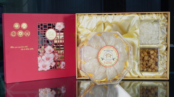 Thiết kế hộp quà sang trọng, tinh tế không chỉ bảo vệ chất lượng sản phẩm mà còn tạo ấn tượng thẩm mỹ, thể hiện sự quan tâm, trân trọng và tinh tế khi làm quà biếu. Hộp quà thích hợp cho các dịp đặc biệt, dễ dàng bảo quản trong môi trường khô ráo, thoáng mát, tránh ánh nắng trực tiếp để giữ nguyên hương vị và dưỡng chất trong suốt thời gian sử dụng. Đây là lựa chọn hoàn hảo cho những người bận rộn nhưng vẫn muốn duy trì chế độ dinh dưỡng cao cấp, vừa tiện lợi vừa đảm bảo hiệu quả bổ sung sức khỏe cho bản thân và gia đình.