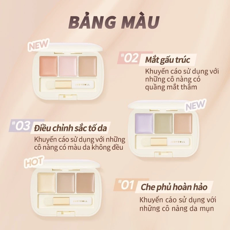 Kem che khuyết điểm 3 màu Judydoll – "vị cứu tinh" cho làn da Việt, giúp hiệu chỉnh màu da, che phủ khuyết điểm chỉ trong 30 giây! Với bảng 3 tông màu thông minh, sản phẩm phù hợp mọi tình trạng da: thâm mụn, quầng mắt, tàn nhang, đỏ mạch…, freeship toàn quốc – cơ hội sở hữu lớp nền hoàn hảo chưa từng có!