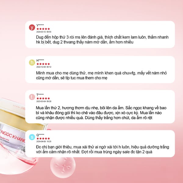 Đừng để những vết nám, sạm và tàn nhang chi phối nhan sắc và sự tự tin của bạn. Hãy để Kem Dưỡng Da Ban Đêm Sắc Ngọc Khang trở thành người bạn đồng hành giúp bạn sở hữu làn da sáng ngời, rạng rỡ và tự tin hơn mỗi ngày.