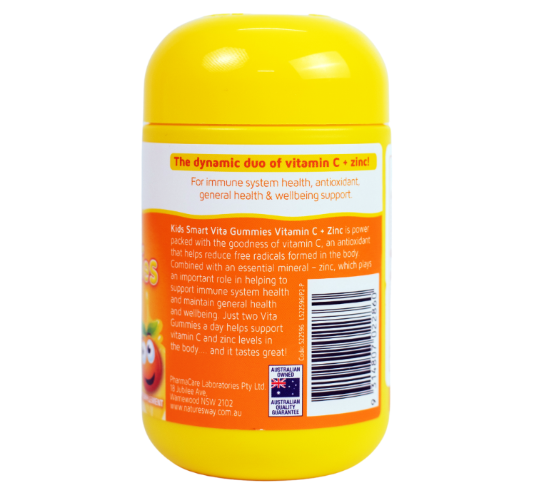 Kẹo Dẻo Nature’s Way Kids Smart Vita Gummies Vitamin C + Kẽm (60 Viên) là sản phẩm bổ sung Vitamin C và Kẽm từ thương hiệu