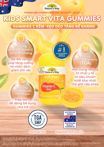 Tên sản phẩm: Nature’s Way Kids Smart Vita Gummies Vitamin C + Kẽm