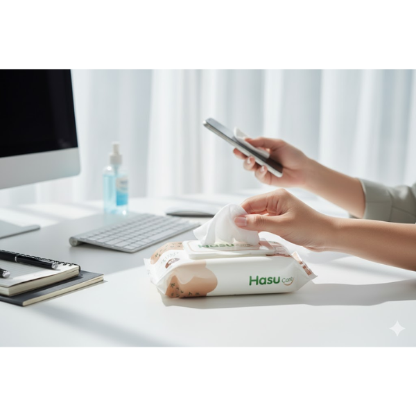 Khăn ướt Hasucare thích hợp cho việc vệ sinh tay, mặt, da em bé, đồ dùng cá nhân, thiết bị điện tử hoặc sử dụng khi đi du lịch, đi làm, đi học. Mùi hương dễ chịu hoặc phiên bản không mùi mang lại sự linh hoạt cho người dùng.