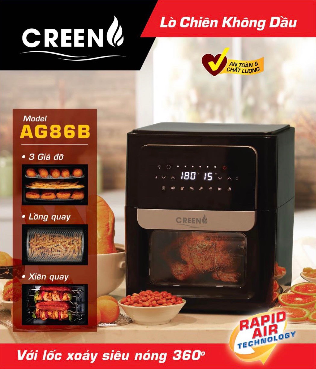 LÒ CHIÊN KHÔNG DẦU ĐỐI LƯU AG86B DUNG TÍCH 12 LÍT THƯƠNG HIỆU CREEN NEW 2022