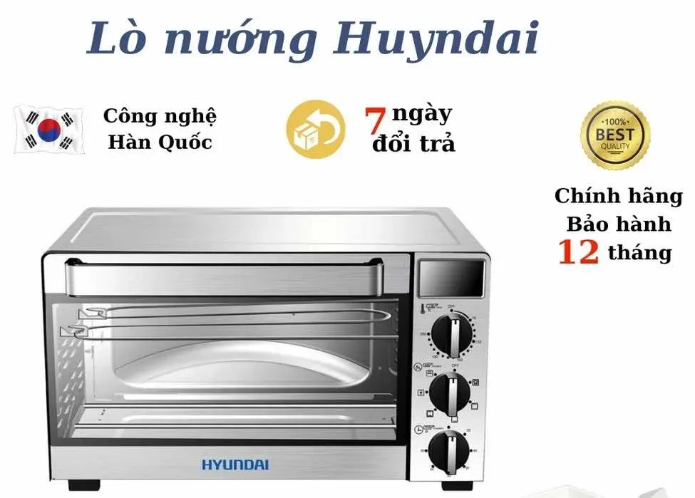 Sản phẩm chăm sóc nhà bếp Hyundai mang đến thành công không chỉ bởi khả năng hỗ trợ công việc nấu nướng mà còn bằng sự hiểu biết sâu sắc về nhu cầu ẩm thực và bày trí không gian nhà bếp của khách hàng. Bằng chức năng nướng xiên quay và quạt đối lưu phân bố nhiệt đều khắp buồng nướng, lò nướng Hyundai giúp món nướng chín rất đều và vàng ươm một cách tự động trong lúc bạn chuẩn bị nước chấm. Bên cạnh đó, với dung tích buồng nướng 45 lít cùng công suất 2000W, lò nướng Hyundai không chỉ cho phép nướng hầu hết các loại thịt từ bò, gà đến cá mà còn nướng được bánh Pizza, khoai tây và nhiều loại bánh khác.
