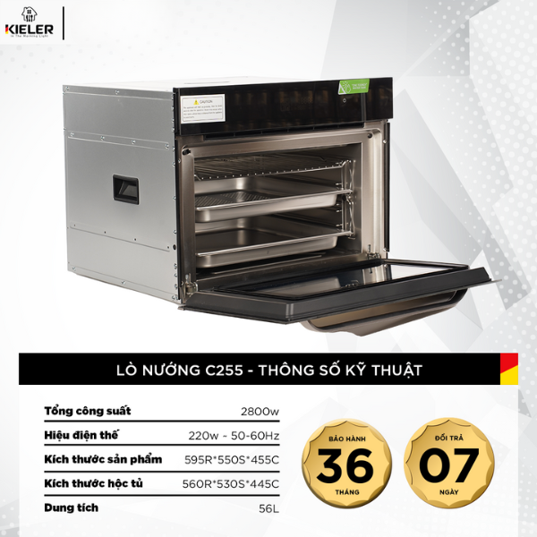- Tên sản phẩm: Lò nướng kết hợp chức năng hấp KIELER KL-C255 với 7 chức năng nướng và hấp chuyên dụng - Hàng chính hãng