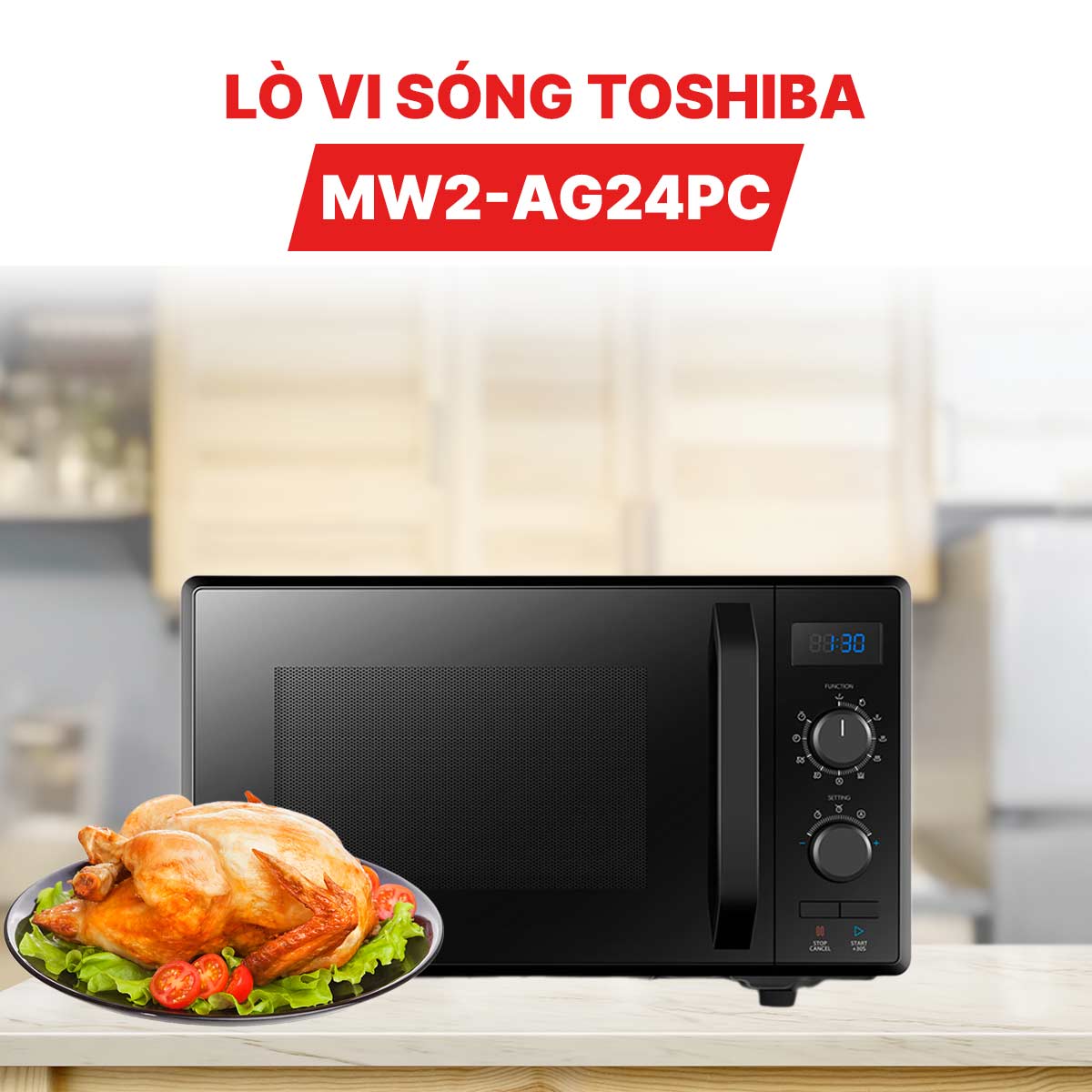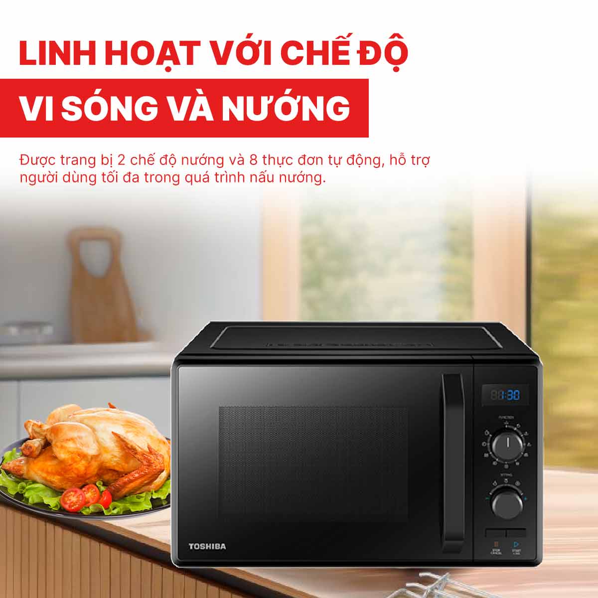 Lò vi sóng Toshiba MW2-AG24PC(BK) là dòng sản phẩm đa năng kết hợp giữa chức năng vi sóng và nướng, mang đến sự tiện lợi và linh hoạt trong gian bếp hiện đại. Với dung tích 24 lít, sản phẩm đáp ứng tốt nhu cầu sử dụng cho gia đình từ ba đến năm người, cho phép hâm nóng, rã đông và chế biến nhiều loại thực phẩm khác nhau một cách nhanh chóng và hiệu quả.