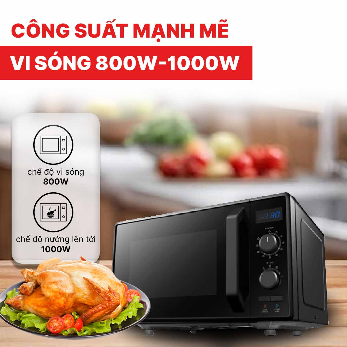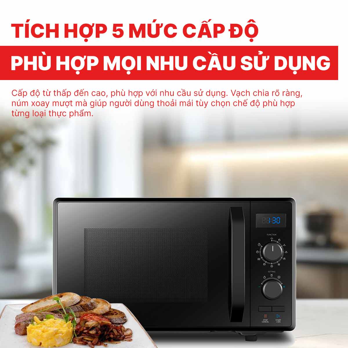 Một điểm nổi bật của sản phẩm là công nghệ đĩa xoay thông minh có khả năng ghi nhớ vị trí, giúp thức ăn được làm chín đều và thuận tiện hơn khi lấy ra. Kết hợp với chức năng rã đông nhanh, lò vi sóng đảm bảo thực phẩm giữ được hương vị tự nhiên và giá trị dinh dưỡng sau khi chế biến.